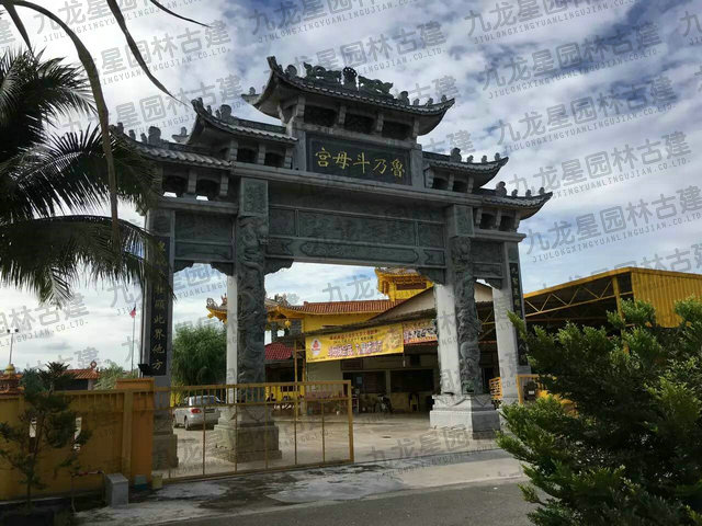 牌坊集中了中國古建筑最有特征的構件組成,有臺座、柱身(包括夾桿石)、梁坊、樓匾、斗拱、樓頂等構件。石造牌坊材質堅固敦實牢靠,且可仿照木結構造型。在藝術處理上,可以在夾桿石、柱子、額坊等處,雕刻各式各樣的花鳥、圖案、龍鳳及各種瑞獸等等,將中國傳統的石刻藝術集中于一身表現出來。中國民俗專家講:“石雕不開光是石雕工藝品,開光后就是具有靈氣的風水神器。”所以“非寧靜無以致遠,非精誠無以神明。” 石牌坊是用石修建的牌坊,是一種裝飾建筑物。柱石的上方刻有麒麟、獅子,夾柱石的浮雕有雙獅戲彩珠,牌坊上還雕刻著其他怪獸云紋。兩側基石柱各有撐鼓,石柱兩側配有石獅。牌坊運用浮雕、透雕等手法,是我國建筑藝術的一大特色。