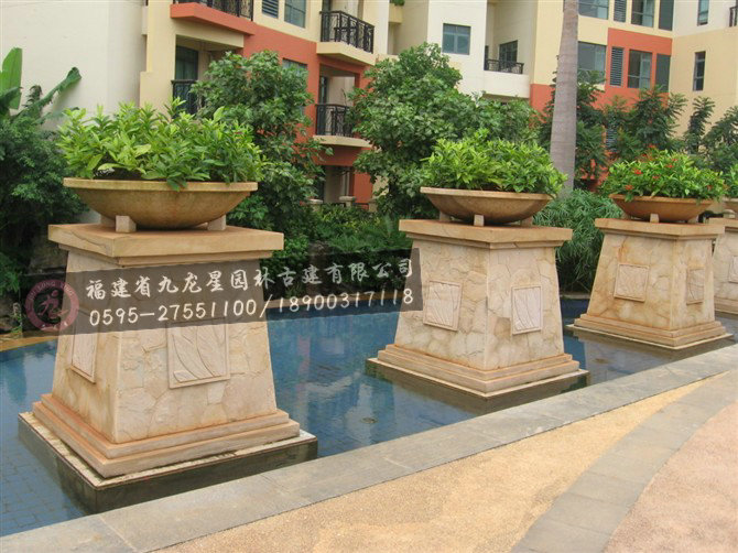 花盆是用于私家花園別墅配套使用的盆狀器物,并廣泛應用于園林綠化和景觀工程當中,其中以石雕類的花盆最有藝術效果。石雕花缽質地堅硬、強度高、抗風化、耐腐蝕、耐磨損、吸水性低,美麗的色澤還能豹保存百年以上,顏色美觀。格調優雅,花色繁多,剛性好,耐磨性強,溫度變形小。保養方便,使用壽命長。