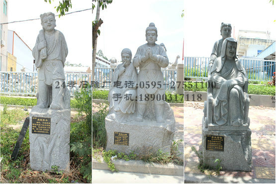 《二十四孝》的編者是元代福建延平府尤溪縣的郭居敬。他曾選輯虞舜以下二十四位孝子的感人故事,為每個故事配上一首詩,用來做兒童的啟蒙讀物,《二十四孝》的名稱便是由此而來?!抖男ⅰ饭适戮幎ǔ蓵?古人把孝道列為社會教化的一項重要內容,鼓勵人們“老吾老以及人之老,幼吾幼以及人之幼”,已經在我國流傳數百年,幾乎達到了家喻戶曉的程度,對國人的倫理道德產生了不可低估的影響。九龍星園林古建加工的二十四孝石雕像栩栩如生,將中國古代的孝賢及其事跡呈現出來,就是為了讓孝道文化這一傳統文化在新時代得以發揚光大,進一步弘揚和傳承中華民族尊老、敬老、愛