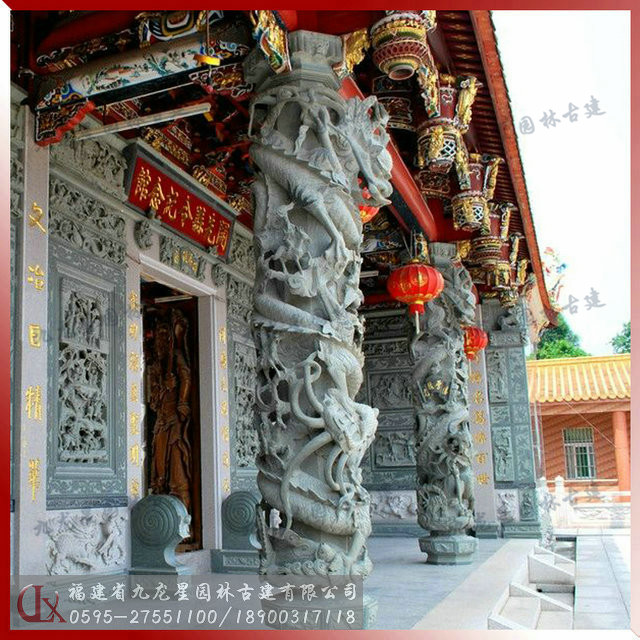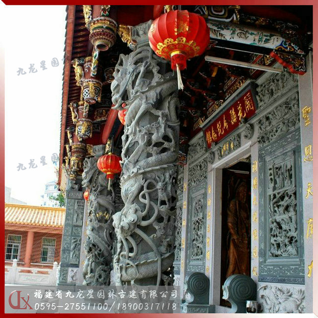 寺廟石雕龍柱是一種龍形浮雕圓柱,通身塑有纏柱云龍,栩栩如生,立在廣場路邊成為景觀和地標。在我們福建閩南沿海地區(qū)幾乎逢廟必有龍柱,讓人可以從龍的軀體雕鑿中感受到古代藝匠想要極力表達的“龍行虎步”、“龍虎精神”的意念。龍柱是中華民族的傳統(tǒng)建筑物,有著悠久的歷史。