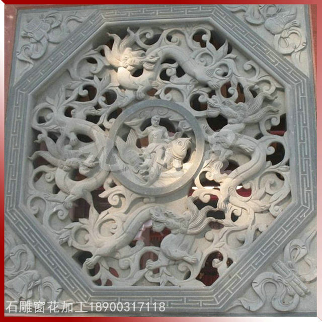 石窗,又稱石花窗,石漏窗。一個“花”字,足可以讓人對它的藝術(shù)性浮想聯(lián)翩,又足以讓人對它通透采光的實用性窺見一斑。石窗以長方形和方形最多,還有圓形、拱形等。長方形的石窗一般以直式為多,橫式次之。石雕花窗一直以來廣泛用在園林古建、廟宇建筑中,屬于傳統(tǒng)建筑構(gòu)件類。
