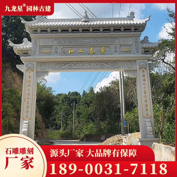 寺廟石牌坊的造型豐富多樣,有單間式、雙間式、多間式等多種形式。其中,單間式石牌坊簡潔明了,適合用于小型寺廟;雙間式石牌坊則莊重大氣,適用于大型寺廟;多間式石牌坊則更加復雜精致,通常是作為主殿前的重要建筑。此外,寺廟石牌坊的造型還受到地域文化的影響,如福建的漳州南山寺石牌坊、浙江的普陀山南海觀音禪寺石牌坊等,都具有鮮明的地方特色。