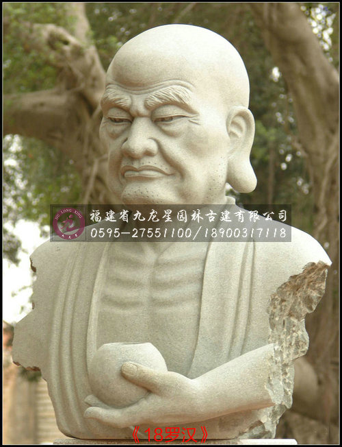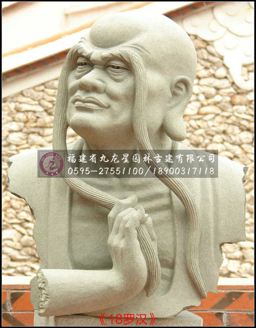十八羅漢半身像雕塑采用天然優(yōu)質(zhì)石材花崗巖精雕而成,因?yàn)榛◢弾r的自然感染力,加上十八尊羅漢像惟妙惟肖,神態(tài)栩栩如生,使得整套羅漢雕像與園林形成渾然一體的感覺。
