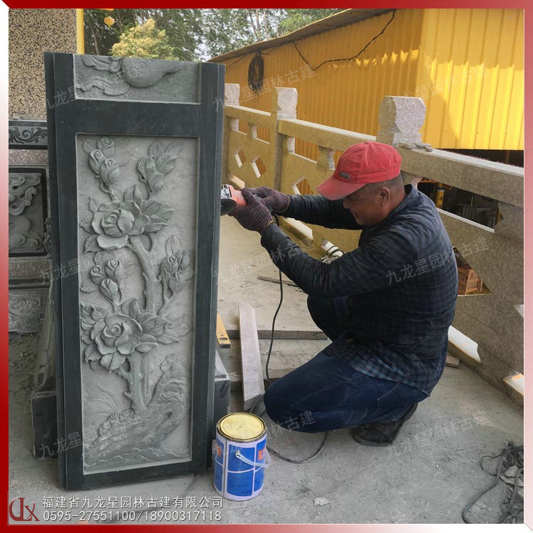 石雕浮雕壁畫在古建筑外墻中占據重要的地位。古建筑的石雕浮雕在內容、形式和材質上與圓雕一樣豐富多彩。建筑石雕浮雕常見的材料有青石、花崗巖、白麻、芝麻黑、羅源青、古田青等等。浮雕的雕刻技藝和表現體裁與圓雕基本相同。