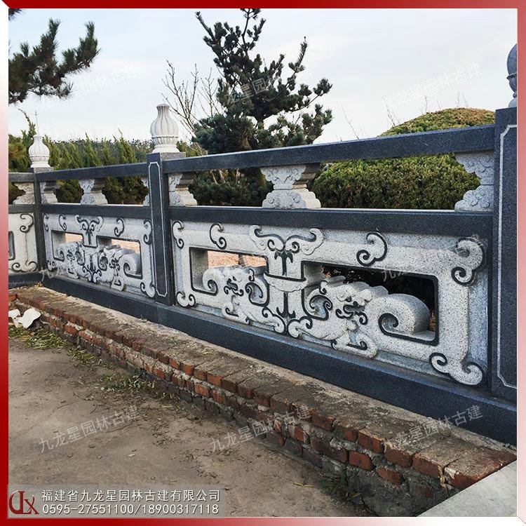 花崗巖河堤石欄桿 池塘石雕防護(hù)欄