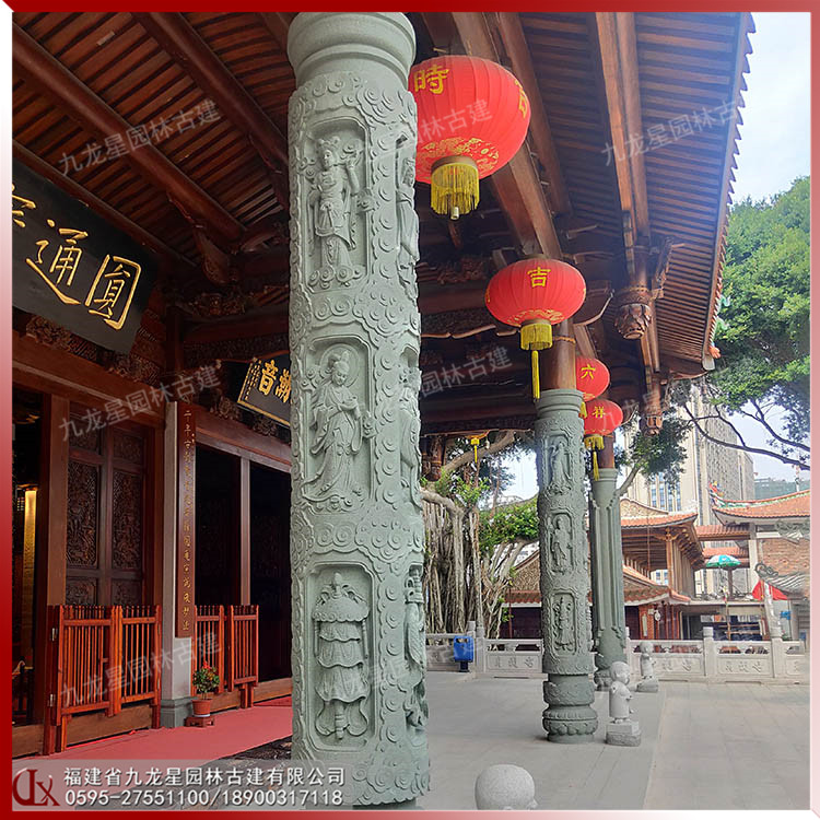 青石浮雕石材柱子 石柱子雕刻經(jīng)文佛像 石雕圓柱