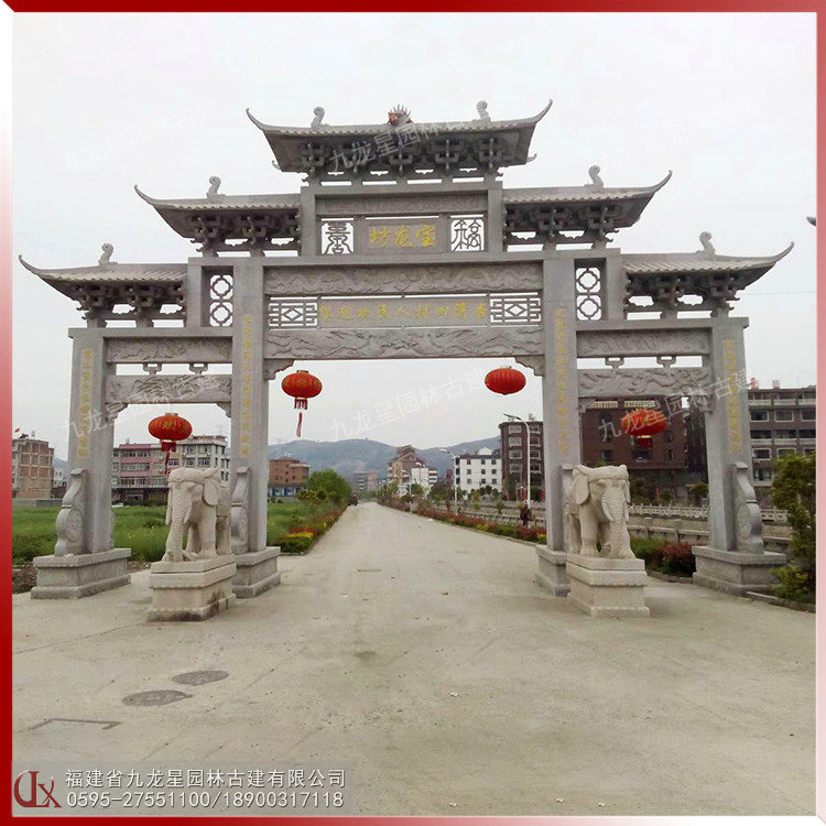 石雕門牌坊 新農(nóng)村石雕牌坊 九龍星牌坊石雕廠